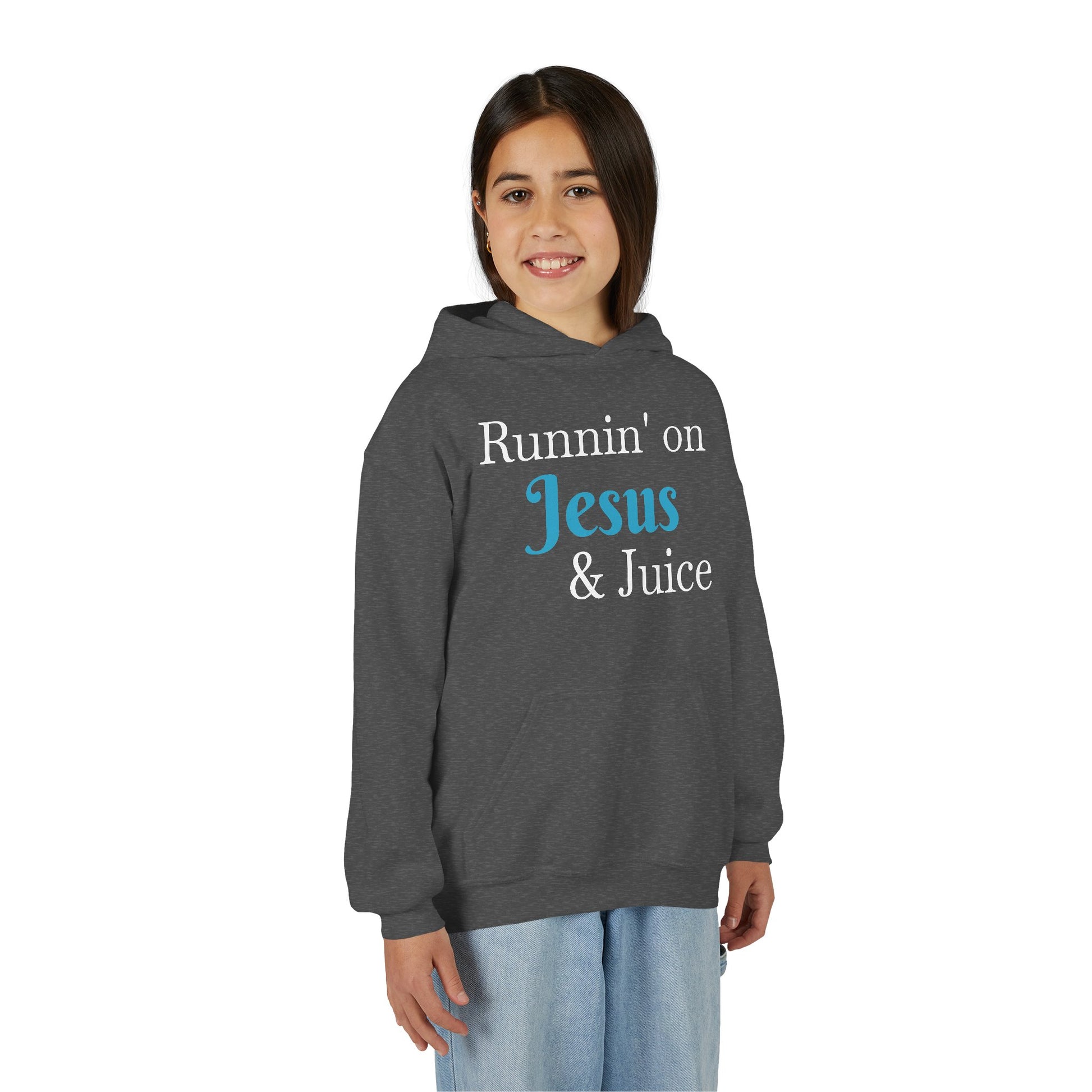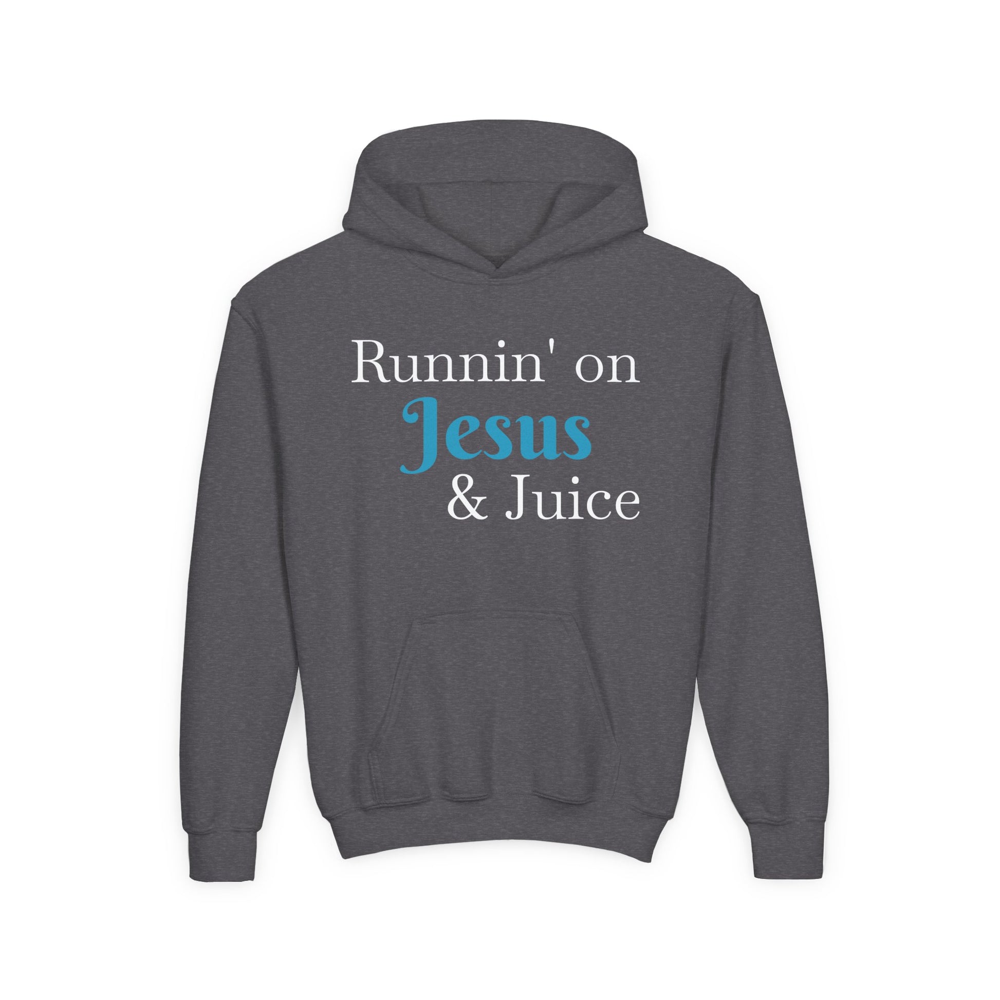 Runnin' on Jesus & Juice-Youth Heavy Blend Hooded Sweatshirt